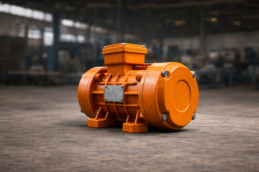 Center flange vibratory motors are specifically engineered for compact mounting and easy installation. The centrally positioned flange allows direct mounting onto machines, ensuring uniform vibration transfer. These motors are widely used in pharmaceutical, food, and processing industries, where precision, cleanliness, and space-saving designs are essential.